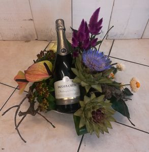 Een bloemstuk is ook altijd mogelijk. Die staan niet klaar in de winkel maar zijn altijd te bestellen.