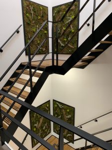 Mos is een natuurlijk product dat toepasbaar is in elk interieur. Een moswand op kantoor is een trendy en ruimtebesparende groene toevoeging waar geen onderhoud bij nodig is. Een fantastische manier om veel groen naar binnen te halen. Het mos ziet er niet alleen prachtig uit maar draagt ook bij aan de akoestiek. Drukke of hol klinkende ruimtes worden hier door prettiger om in te werken, Omdat het mos een deel van het geluid absorbeert.