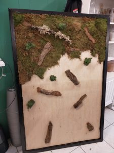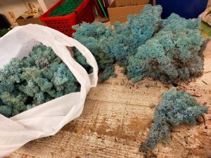 Wij gebruiken verschillende soorten mos in verschillende kleuren. Ook schors verwerken we erin.