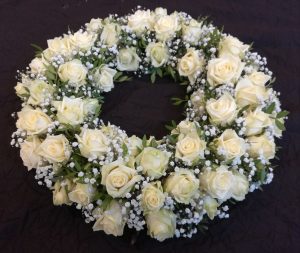 Rouwbloemwerk wordt meest gemaakt op steekschuim, bijvoorbeeld een biedermeier, druppel vorm of langwerpig.