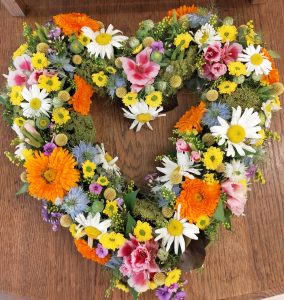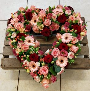 Hart vorm kan in twee variante dicht of open. Deze worden vaak alleen met rozen opgemaakt, maar diverse bloemen kan natuurlijk ook. Je zou ook een krans kunnen opmaken.